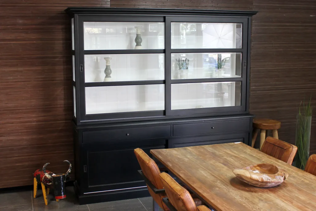 Een industrieel of modern interieur? De witte moderne vitrinekast wordt meestal uitgevoerd in RAL 9016 spierwit. Deze kleur geeft de witte kast een zuivere, moderne uitstraling. In combinatie met een moderne of strakke opbouw geschikt voor een modern of design interieur. Uiteraard zijn hierbij de ‘landelijke’ RAL 9003 of RAL 9010 kleuren ook mogelijk. Hebt u een modern interieur en opzoek naar een volledig houten kast? Een ruime keuze moderne vitrinekasten in volledig massief teak. De teakhouten kasten zijn leverbaar in veel verschillende stijlen en afmetingen. De industriële kasten hebben dikwijls de combinatie met metaal.