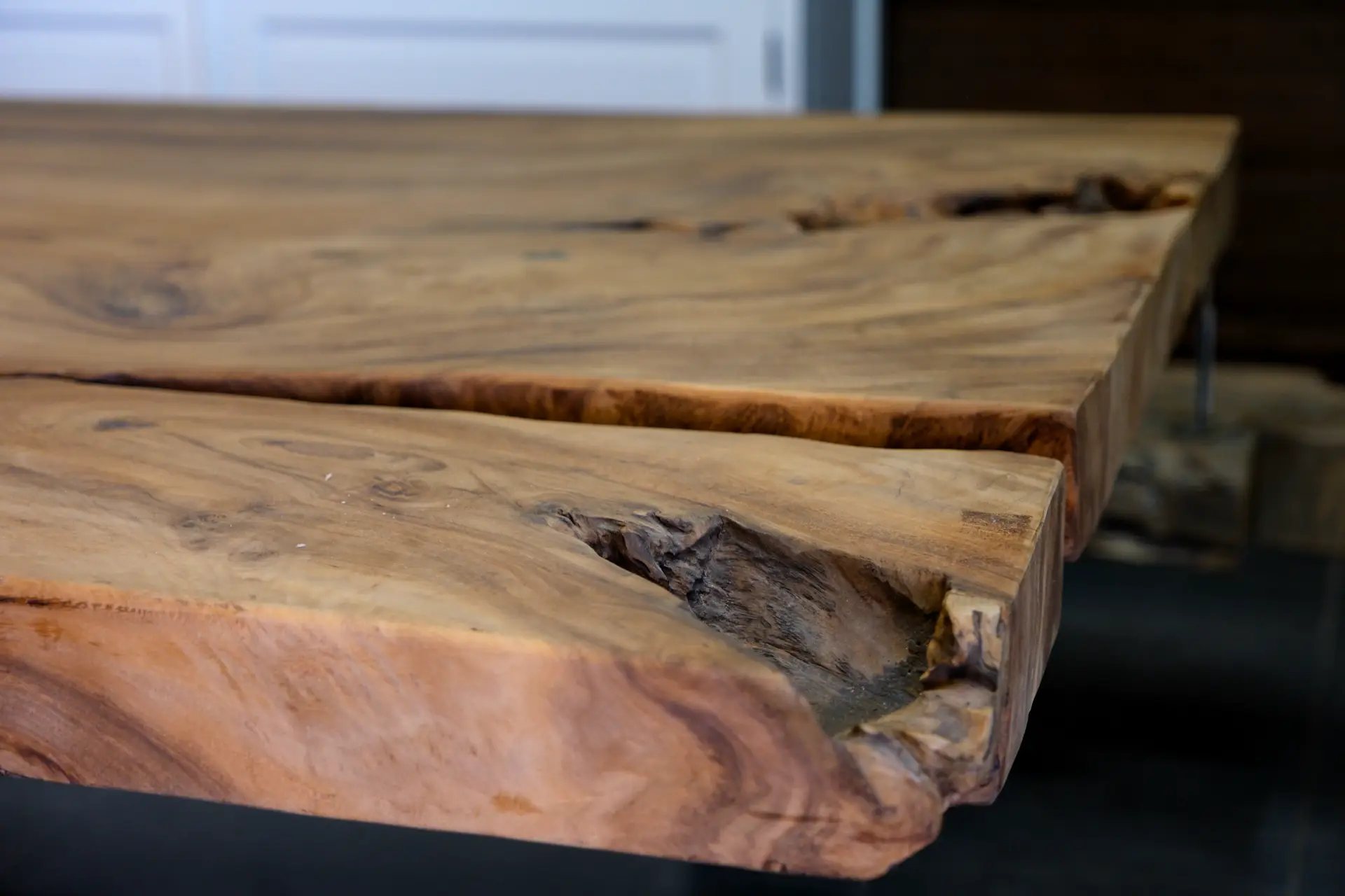 Dieser Designer-Baumstammtisch hat ein exklusives Aussehen und passt daher gut in eine industrielle oder moderne Einrichtung. Neben einer modernen Einrichtung passt er auch gut zu einem rustikalen oder minimalistischen Stil. Der Suar-Tisch kann als Designer-Baumstammtisch, als einzigartiger Küchentisch oder als Designer-Esstisch in der Küche, im Esszimmer oder im Wohnzimmer dienen.