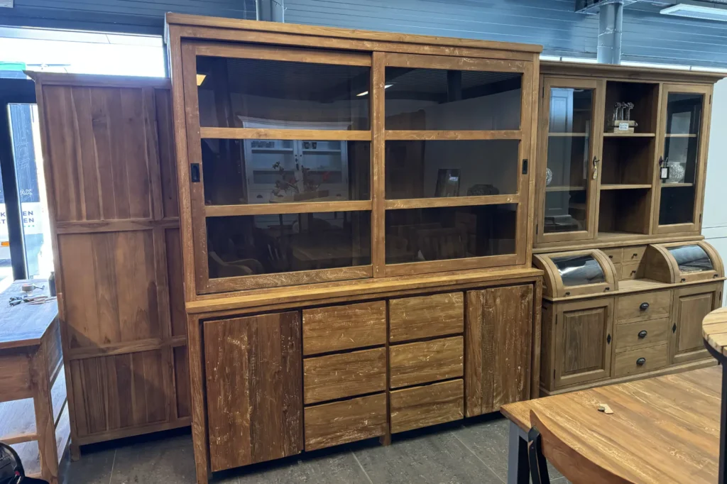 The white rustic display cabinet is often finished in RAL 9010 white or RAL 9003 signal white. The combination of white and teak gives the cabinet a luxurious, warm appearance. The combination of these two techniques is therefore often used in a rustic interior. In addition to the popular rustic furniture, TEAK2 also has a number of classic, authentic and brocante furniture items in its assortment. The large assortment ensures a wide choice and variation. Despite this large choice, it is also always possible to order custom-made furniture.