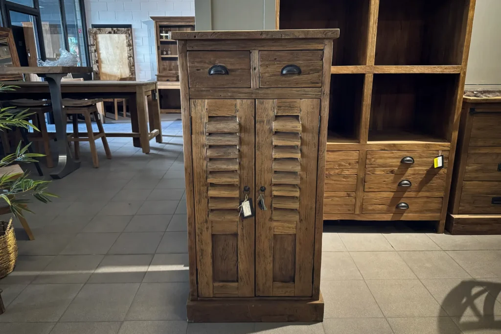 Need a spacious and large buffet cabinet? TEAK2 has a wide range of tall and large buffet cabinets. These cabinets have lots of storage space consisting of drawers and shelves. The large teak cabinets are also known as teak shop cabinets or apothecary cabinets. Both the teak shop cabinet and the large apothecary cabinet are available in different structures. These teak buffet cabinets can have a modern look due to the smooth, untreated teak, while the old or brushed teak gives the cabinet a rustic or authentic character.