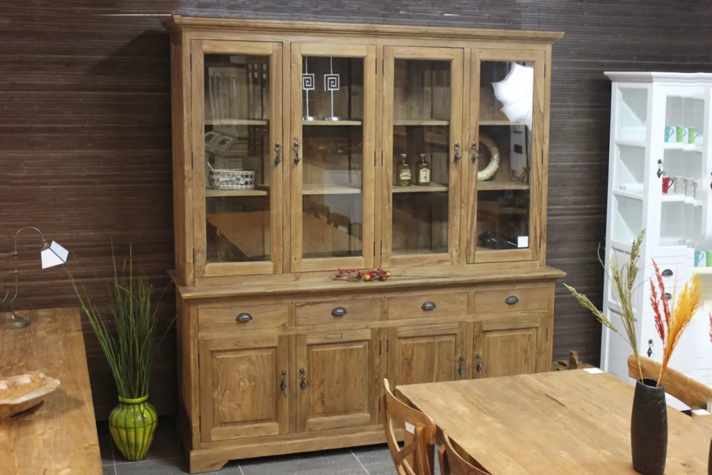 Teak buffet cabinet at furniture store TEAK2. The teak buffet cabinets are traditionally crafted in Indonesia. Teak of the highest quality at competitive prices! The wood is also ecological and complies with the Indonesian Legal Wood Hallmark. TEAK2 has a wide range of buffet cabinets made of sturdy teak. The buffet cabinets and display cabinets are available in different styles, sizes and treatments. Each treatment has its own characteristics and appearance. In addition to the wide selection of teak furniture, customization is always an option. Would you prefer a white or colored buffet cabinet? View the wide assortment white buffet cabinets and colored buffet cabinets in the webshop.