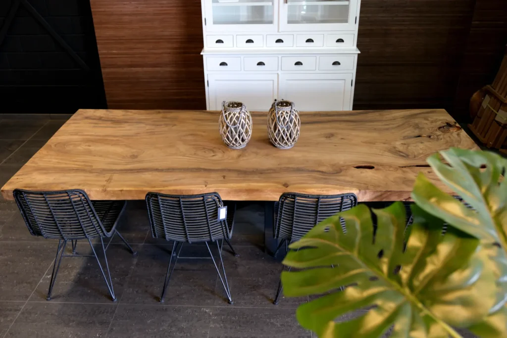 Teak tables at furniture store TEAK2. The teak tables are traditionally crafted in Indonesia. Teak of the highest quality at competitive prices! The wood is also ecological and complies with the Indonesian Legal Wood Hallmark. TEAK2 has a wide range of wooden modern or rustic dining tables and coffee tables made of sturdy teak. A teak table is always available in different sizes, styles and treatments. Each treatment has its own characteristics and appearance. In addition to a wide selection of teak furniture, customization is also always an option. Be sure to check out the wide range of matching cabinets and chairs.