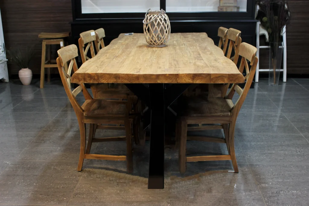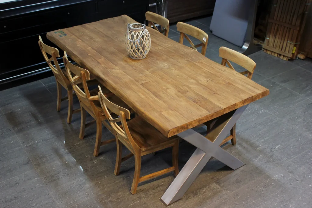 The rustic teak table is often made from sturdy old teak or old brushed teak. At TEAK2, the old teak is always recycled. Moreover, this wood is much heavier and has a robust character. Not only the appearance, but also the sustainable reuse is a choice that is becoming increasingly important. Reuse does not make the end product inferior, but rather gives the wood its own charm. All products will only be produced or delivered when they meet the high standards. The rustic tables are beautiful in a presbytery style or rustic interior. Of course, they are also beautiful in an industrial or modern interior. The wide choice and possibilities mean there is something for every style.