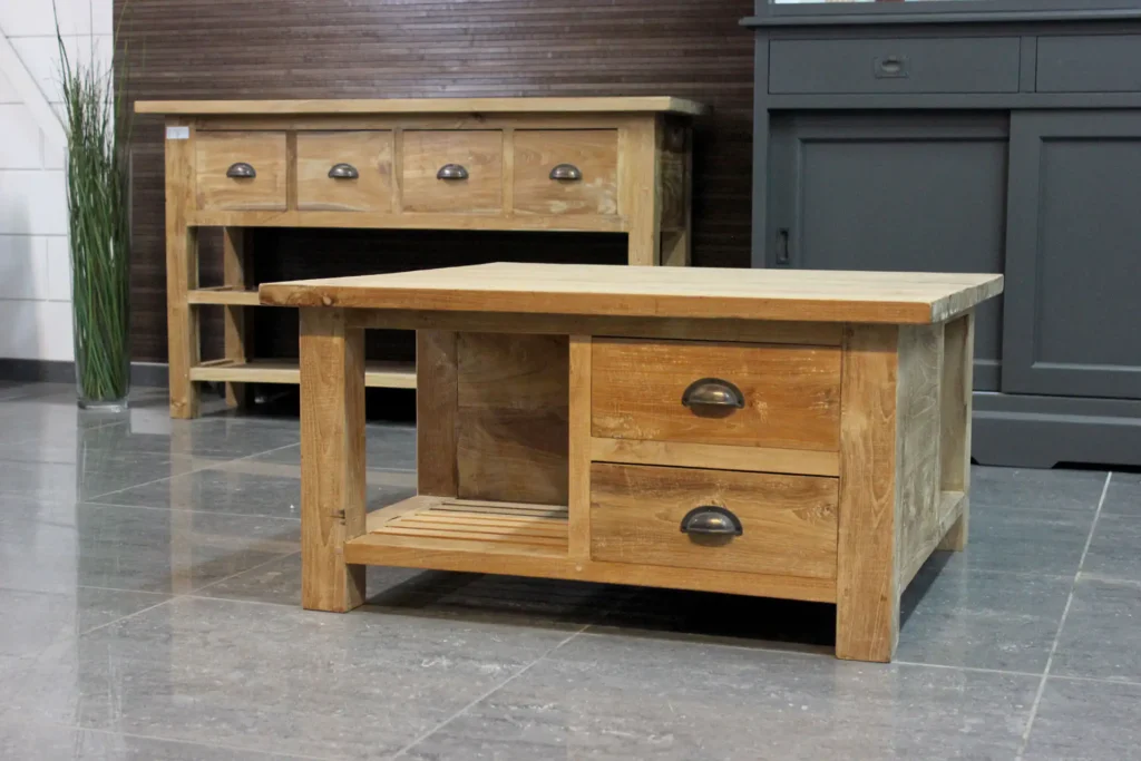 TEAK2 also offers round or square coffee tables. These tables are available in various styles and finishes. The square tables often have drawers, creating ample storage space. A square coffee table often offers the most practical space in the living room, which is why this shape is very popular. The range also sometimes includes round or oval tables. Are you looking for something different in terms of shape or size? Customization is always possible.