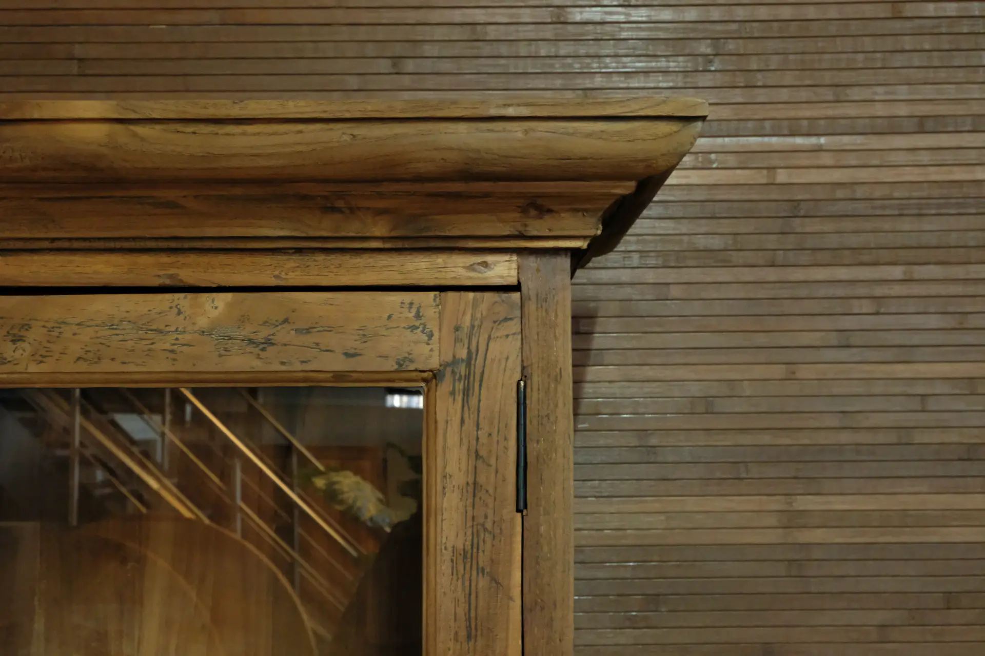 This old teak bread cupboard has a rustic look and therefore fits nicely in a presbytery style or country decor. In addition to a rustic interior, it also looks good in a contemporary or modern style. The teak cabinet can serve as a rustic teak buffet cabinet, kitchen cabinet or teak storage cabinet with convex doors in both the kitchen and living room.