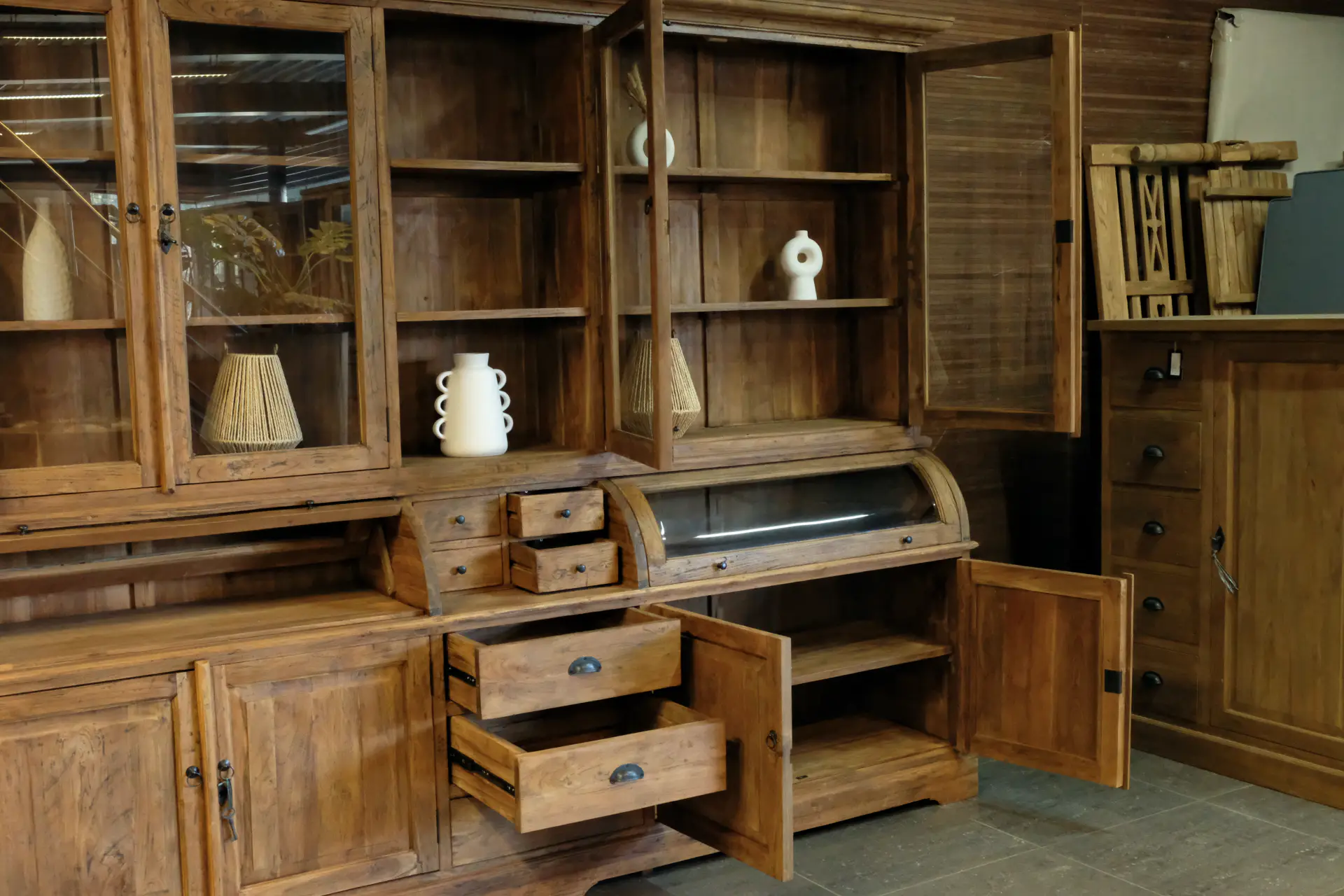 Old teak grutters cabinet with convex doors, sturdy old teak. Exclusive, rustic buffet cabinet in teak from Indonesia - TEAK2.