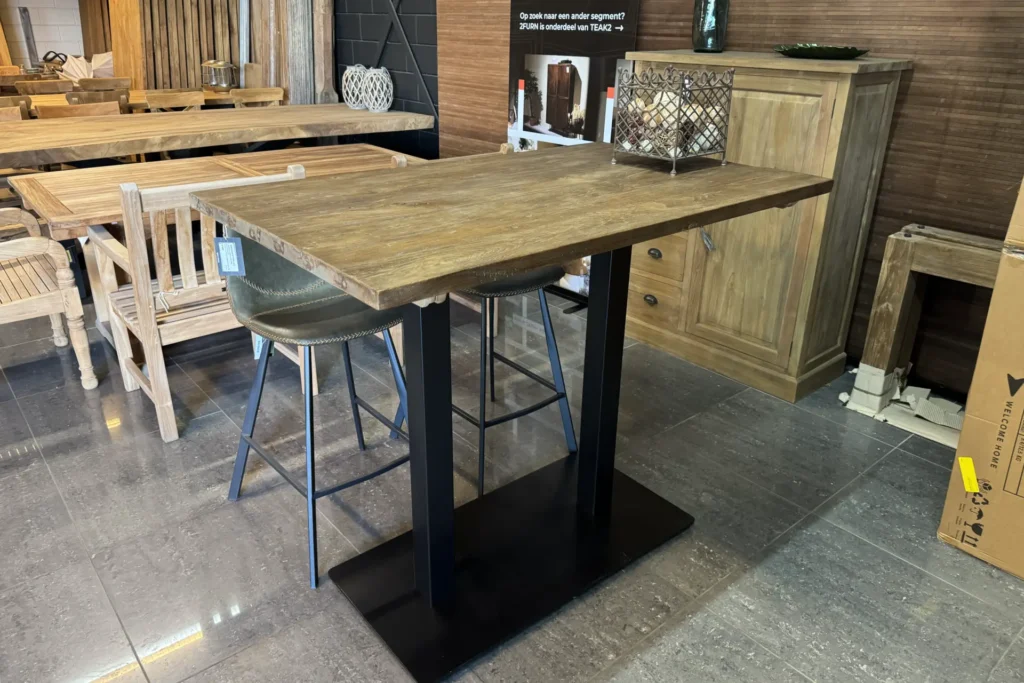 Table de bar en teck ou en suar chez le magasin de meubles TEAK2. Les tables de bar en bois sont traditionnellement fabriquées en Indonésie. Du teck et du suar de haute qualité à des prix compétitifs! TEAK2 propose une large gamme de tables de bar en teck de style rustique et moderne. Ces tables hautes sont disponibles en différents modèles et tailles. Vous cherchez quelque chose de spécifique ou quelque chose qui correspond parfaitement à vos goûts? TEAK2 propose également des produits personnalisés. Les tables sont principalement disponibles en 3 variantes: teck lisse non traité, vieux teck brossé et vieux teck. Chaque traitement a ses propres caractéristiques et charisme.