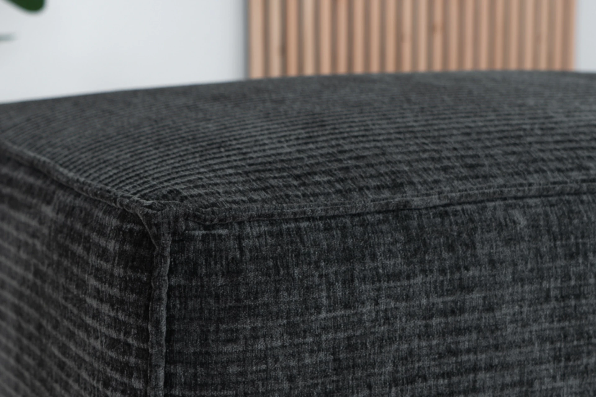 Duurzame, comfortabele en moderne poef in ribstof met metalen zwart onderstel. De Luwes 1Z is een ribstof poef met een moderne uitstraling. Deze ribstof hocker is uitgevoerd in gerecycled polyester, een duurzame stof uit 100% gerecyclede plastic flessen. Het is een zeer stevige ribstof met een Martindale score van 95.000 waardoor de stof lang mooi en slijtvast blijft. De stof voelt super zacht en comfortabel aan, het materiaal is bovendien ook waterafstotend! Het onderstel van deze poef is een zwarte metalen poot. Mooi te combineren met de Luwes 3-zits banken of hoekbanken bij TEAK2. Zo is het mogelijk om een royale bank te creëeren met longchair of een U-bank als deze aan de hoekbank gekoppeld wordt. Uw zithoek was nog nooit zo comfortabel! 😉