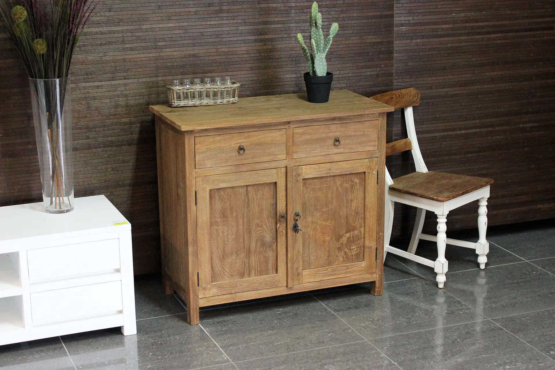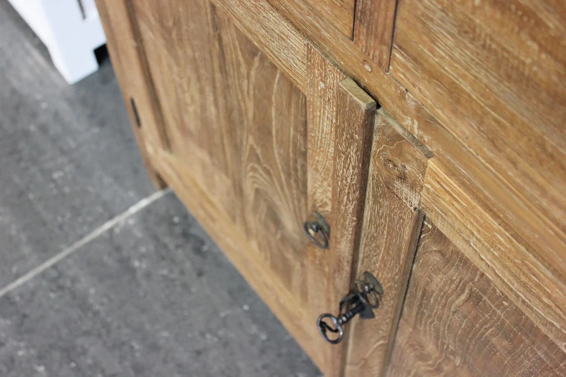 De serie Teak Rumah wordt ambachtelijk gemaakt in Indonesië en is leverbaar in verschillende maten en/of uitvoeringen. Dit teak dressoir is uitgevoerd in oud teak. Oud teak is zwaarder en dichter van structuur mede doordat het jarenlang verschillende omstandigheden heeft ervaren. Het oude gerecycled teakhout is qua kleur donker van tint, heeft een geleefd, exclusief karakter en een prachtige structuur. TEAK2 maakt enkel gebruik van de beste kwaliteit teak afkomstig uit Java! Degelijke, massieve en zware opbouw.